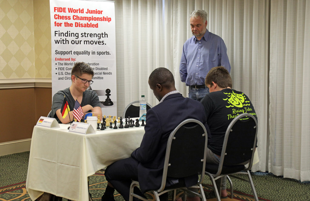 On August 7th, the Opening Ceremony and the Drawing of Lots kicked off the 2nd FIDE World Junior Chess Championship for the Disabled in Cherry Hill, New Jersey with commentary and greetings from IO Beatriz Marinello, Chief Arbiter Carol Jarecki and FIDE Commission for the Disabled (DIS) Chairman GM Thomas Luther.
